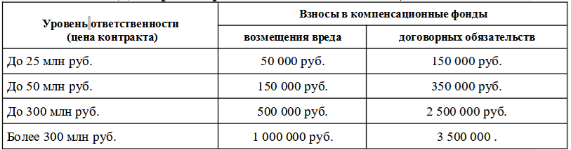 - Взнос в компенсационный фонд в СРО. Мера, организованная для покрытия убытков, причиненных любым членом СРО в результате своей профессиональной деятельности. Размер взноса фиксирован законодательством РФ (не может быть уменьшен или оплачен в рассрочку):
